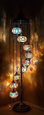 Wishicious Handmade Turkish Lamp Moroccan Mosaic Floor Lamp, Multicolored 9 Globes Floor Lamp, Turkish lamp