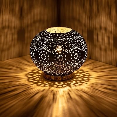 Moroccan Mosaic Table Lamp Metal Turkish Moroccan Lamp Handmade Mosaic Bedside Lamp Nightstand Lamp with Vintage Patina Green Globe Lampshade, for Bedroom Living Room Decor, Size 7 H &7.8 D