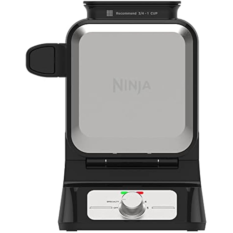 Ninja Belgian Waffle Maker Pro | Vertical Design | 5 Shade Settings with Precision-Pour Cup & Chef-curated Recipe Guide | Black & Silver | BW1001