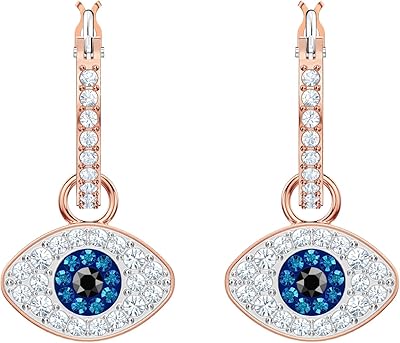 SWAROVSKI Womens Symbolica Evil Eye Hoop Pierced Earrings, Multi-colored, Rose-gold tone finished