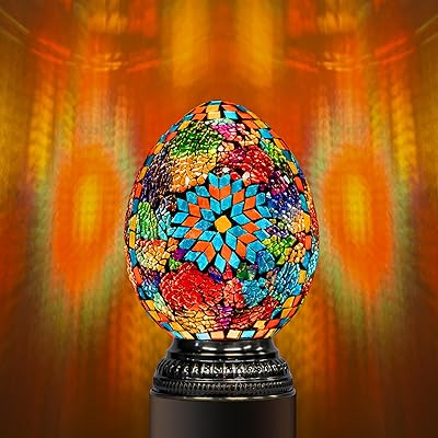 Marrakech Turkish Moroccan Table Lamp with Handmade Mosaic Glass, Stained Glass Lamp with Tiffany Style, Vintage Lamp with Bronze Base Including LED Bulb for Living Room Bedroom Decor Colorful